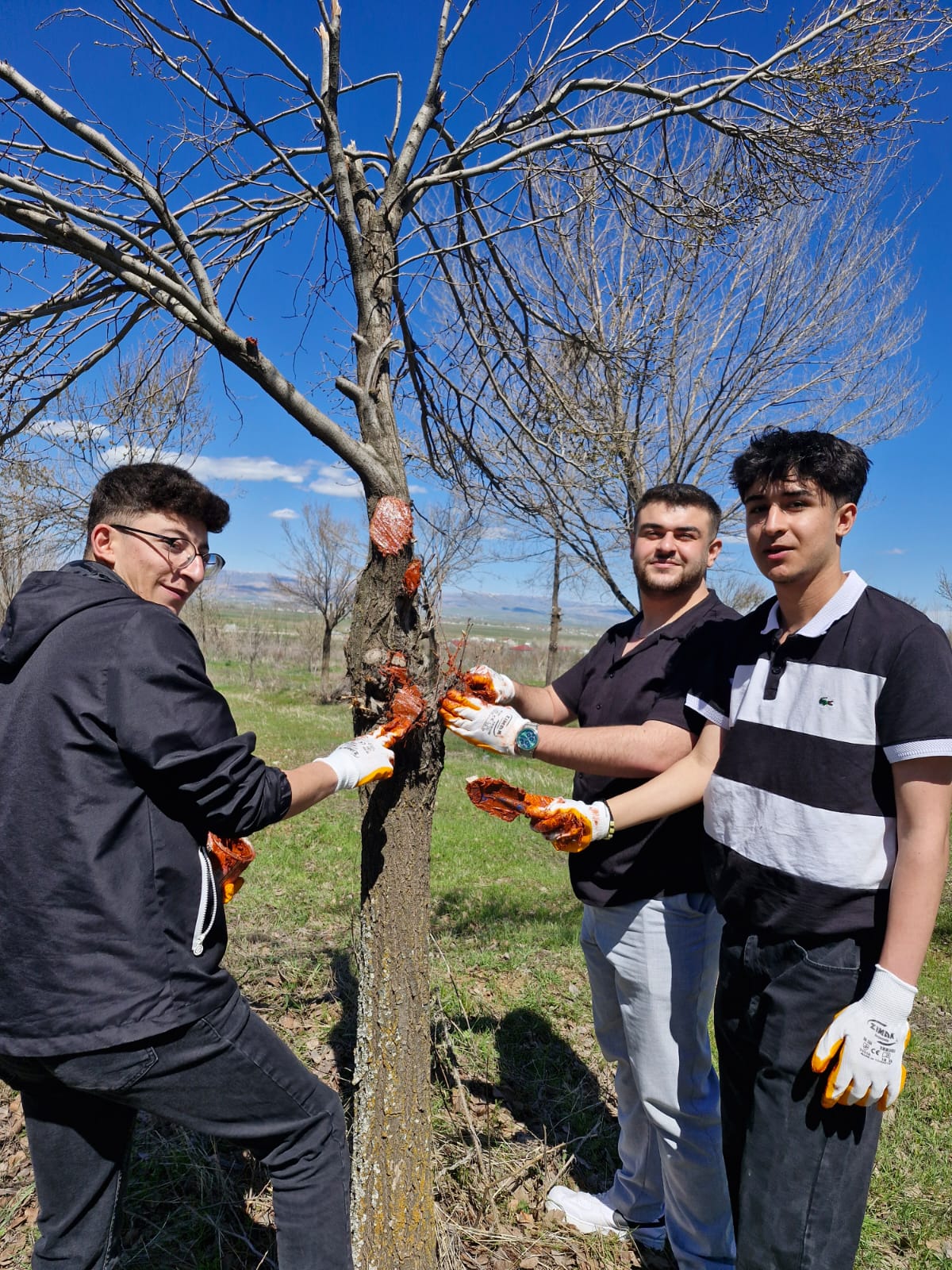 Öğrenciler, hocalarının gözetiminde gerçekleştirilen etkinlikte, ağaçlarda doğru budama tekniklerini uygulamalı olarak öğrenme fırsatı buldu. Budama işleminin ardından ağaçlarda oluşan yara bölgeleri, zararlıların girişini engellemek ve hastalık riskini azaltmak amacıyla özel ağaç macunu ile kapatıldı.